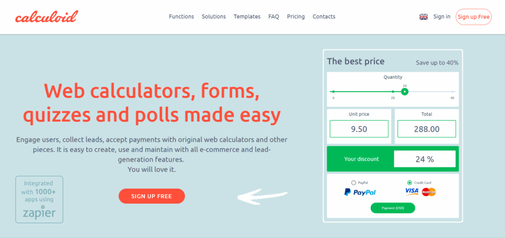 It’s perfect for teams that want a ready-made tool to capture qualified leads. You can design cost estimators, booking calculators or ROI tools using a drag-and-drop builder, then connect them directly to email or CRM workflows.